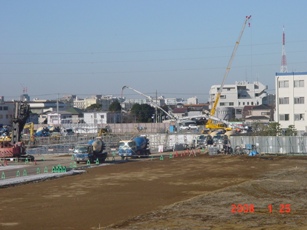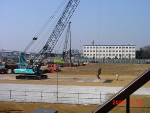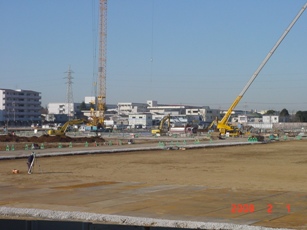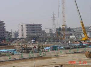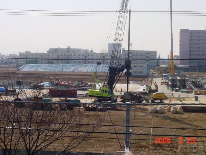 | 2008.2.23 東側でも大きなクレーンで作業しています。 北側3階より撮影。 |