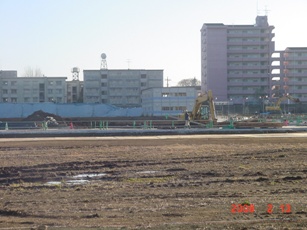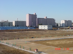 | 2008.2.3 南側県営10階より、1号棟(西側)駐車場工事の場所を撮影。 |