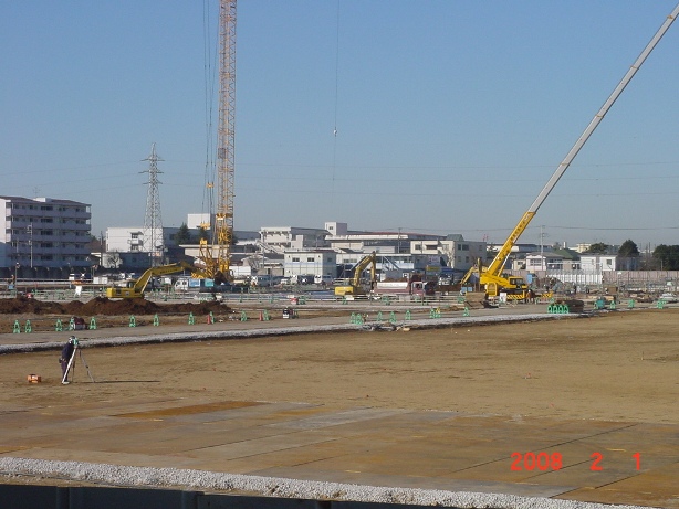 | 2008.1.25 西側駐車場の工事。この時期は生コン車が100台近く入りました。 |