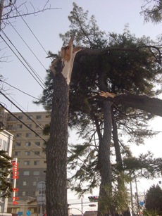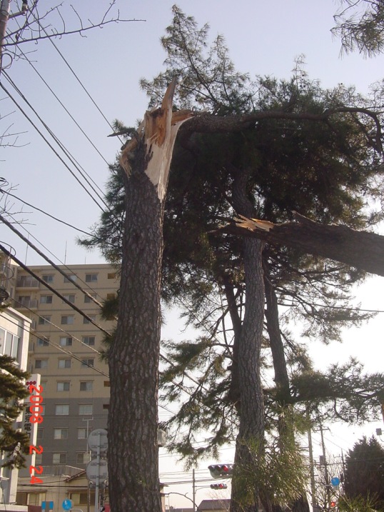 | 2008.2.24 昨日の強風で折れた松の木。 |